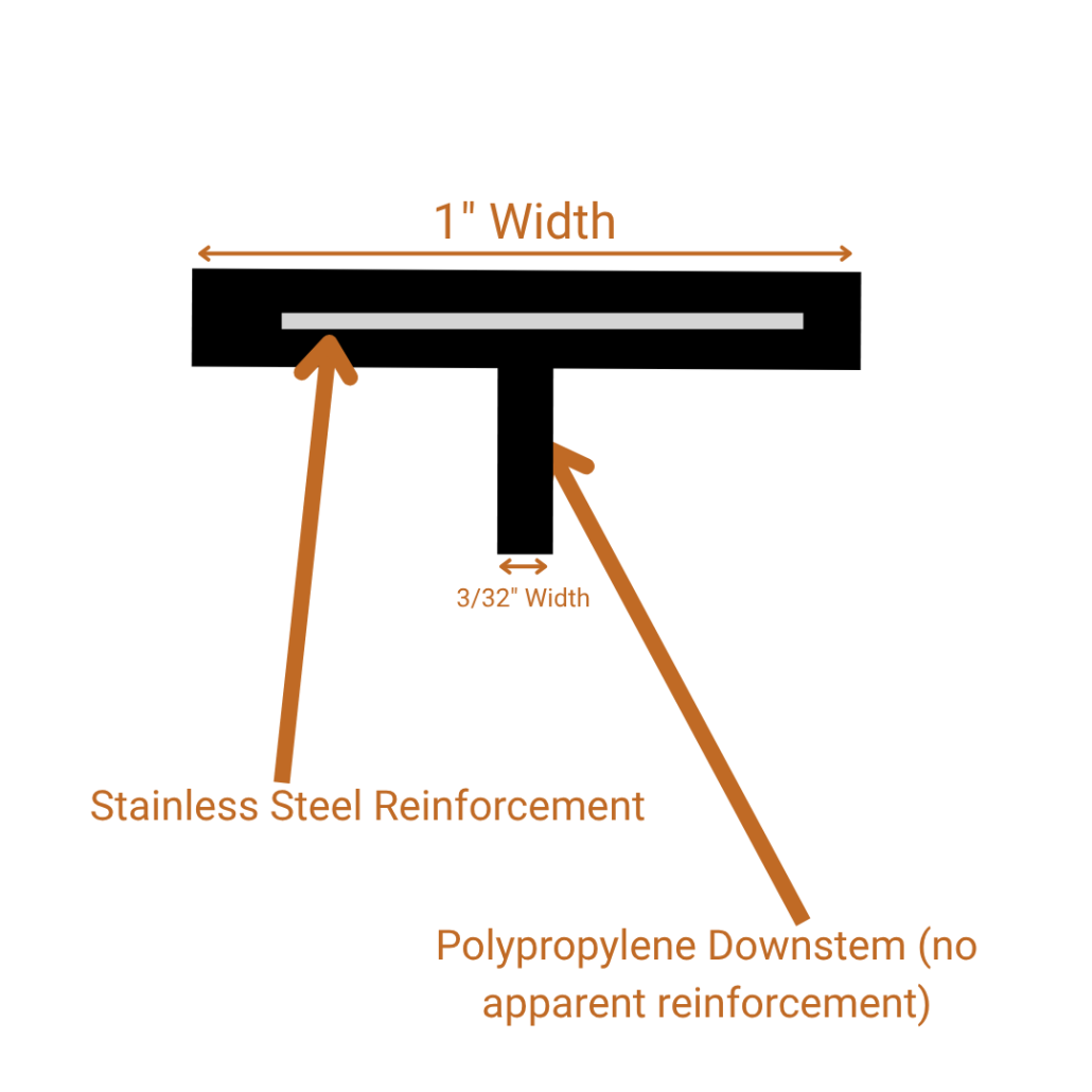 | Clip Bearing Width | 1-1/16″ total width (bearing approximately 15/16″ after 1/8″ spacing downstem) | 1″ total width (bearing: 29/32″ std. / 27/32″ S) | 3/4″ gusset width (bearing approximately 9/16″ after 3/16″ spacing) | Not specified (estimated ~3/4″ to 1″ total width with 3/16″ spacing) | Not specified (appears ~5/8″ total width; effective bearing reduced further depending on spacing used) | Approximately 5/8″ total width (about 3/8″ bearing with minimum 3/16″ groove requirement) |
