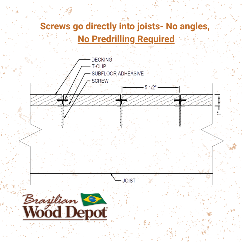 Many systems on the market were originally designed for composite or softwood decking, not dense hardwoods like Ipe or Cumaru. That difference shows up in real-world performance, especially in areas like board movement, hold-down strength, and long-term serviceability.