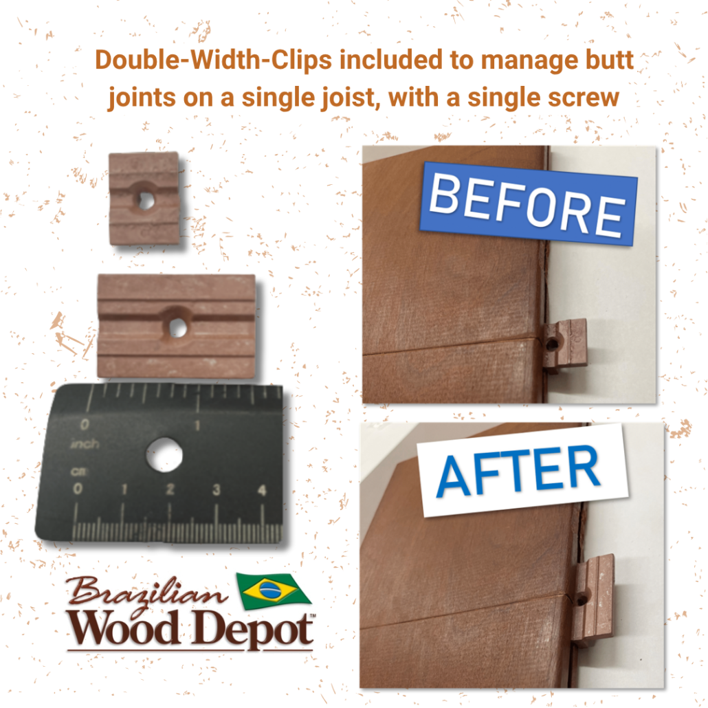 - Butt Joint Solution — How the system handles two boards meeting on a single joist. This is one of the most common failure points in decking. A proper solution helps prevent movement, lifting, and visible gaps over time.