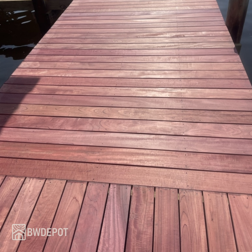 In addition to decking, Purpleheart has historically been used in heavy construction, flooring, specialty millwork, and marine-adjacent applications where strength and durability are critical. For customers seeking a high-performance tropical hardwood decking material that combines structural capability with distinctive character, Purpleheart remains one of the most mechanically robust options available.