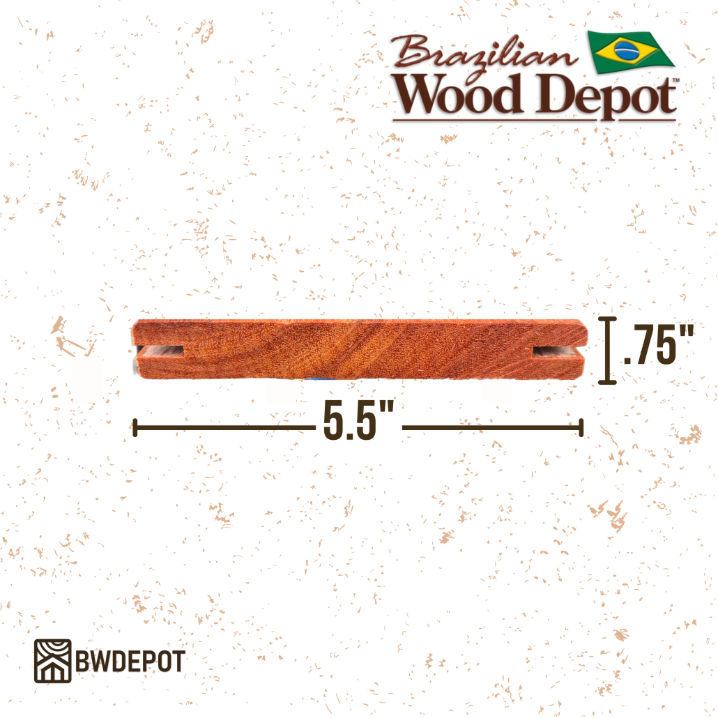 This Cumaru 1×6 Decking Board (Grooved Both Sides) (actual ¾″ × 5½″) combines Cumaru’s rugged density with a profile built specifically for hidden-fastener installations. The dual side-grooves accept T-shaped hidden deck clips, producing a smooth, uninterrupted surface that showcases the species’ red-gold grain movement without visible screws or plug patterns.