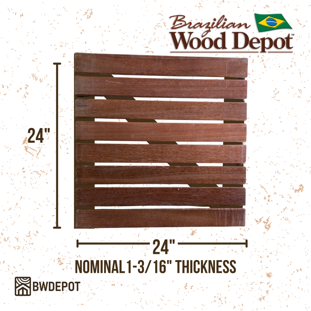 Red Balau is naturally resistant to moisture, mold, and surface wear, without chemical treatment. While it is lighter and less dense than Ipe or Garapa deck tiles, Red Balau delivers reliable performance for residential patios, balconies, rooftop terraces, and decorative outdoor living spaces.